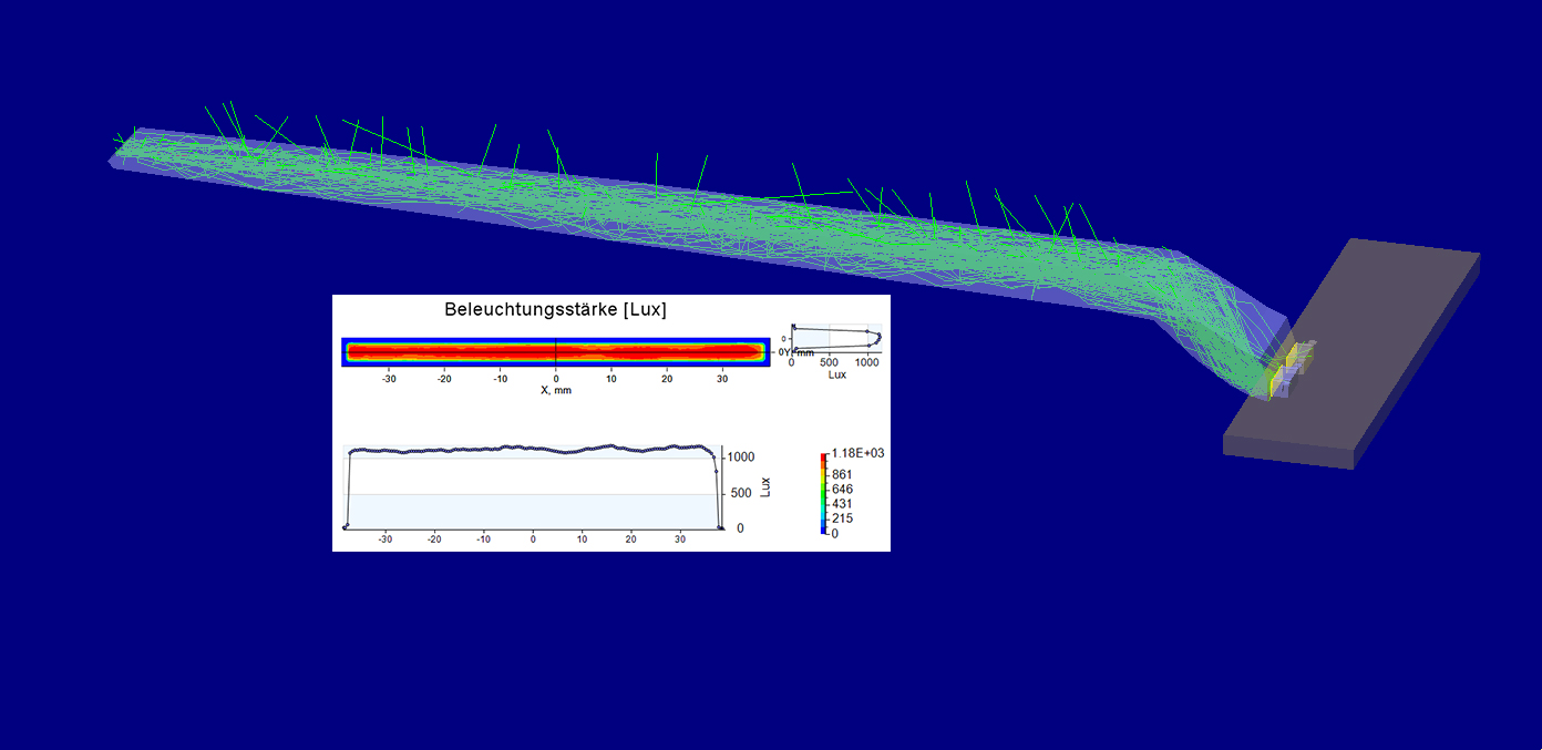 Optimierung der Lichtleiter-Geometrie und Auskoppelstruktur zur Verteilung und Ausrichtung des Lichtes